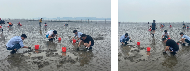 我們穿上襪子,戴上手套,提著小桶,大家齊心協(xié)力一起撿海螺、拾海貝、抓螃蟹。在抓螃蟹活動中,我們進行了團隊分工,有找螃蟹的、抓螃蟹的,找到螃蟹的人呼喚自己的同伴過來一起抓螃蟹,在短短的5分鐘時間中,進行分工合作的我們,收獲頗豐。